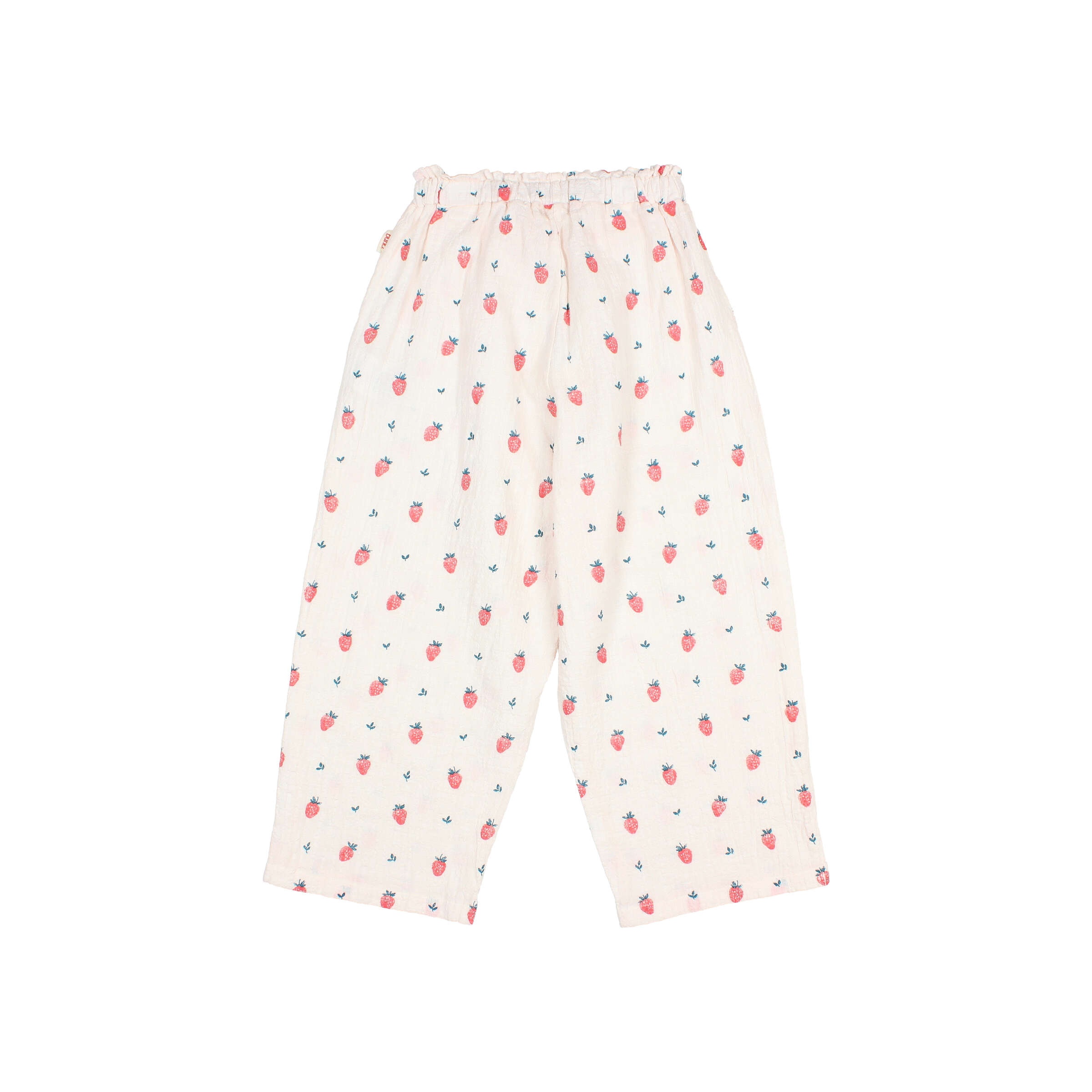 extured organic cotton top with strawberry print. Straight neckline with elastic band. Elastic straps. Hem with ruffle and elastic band.