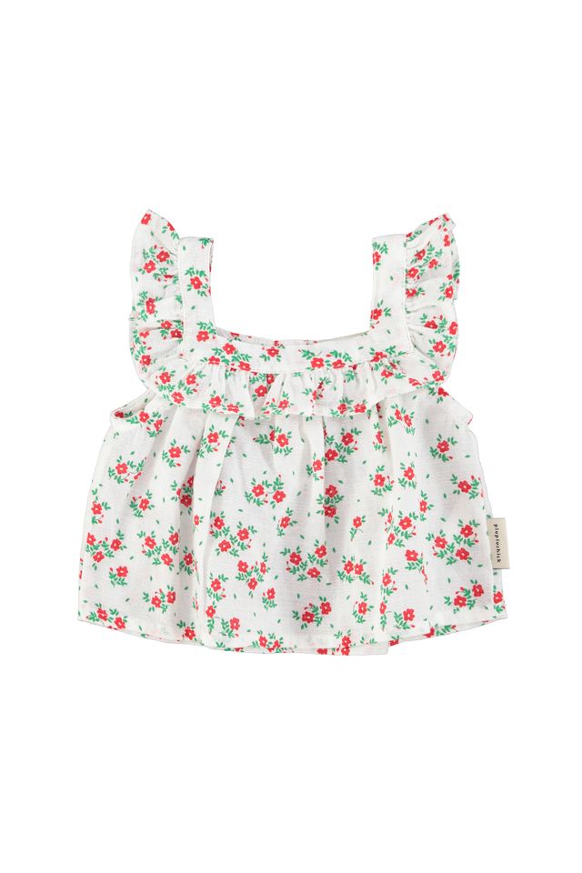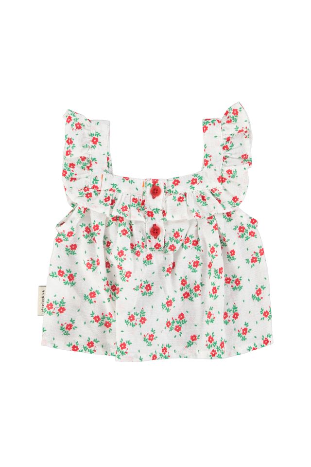 sleeveless blouse ecru w red flowers allover