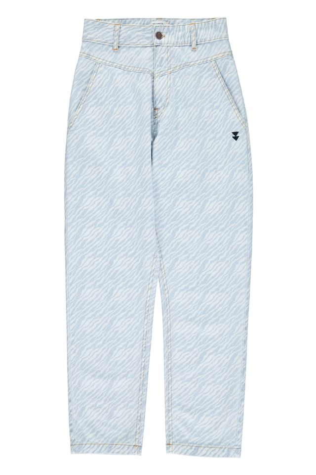 trousers light blue denim w zebra print